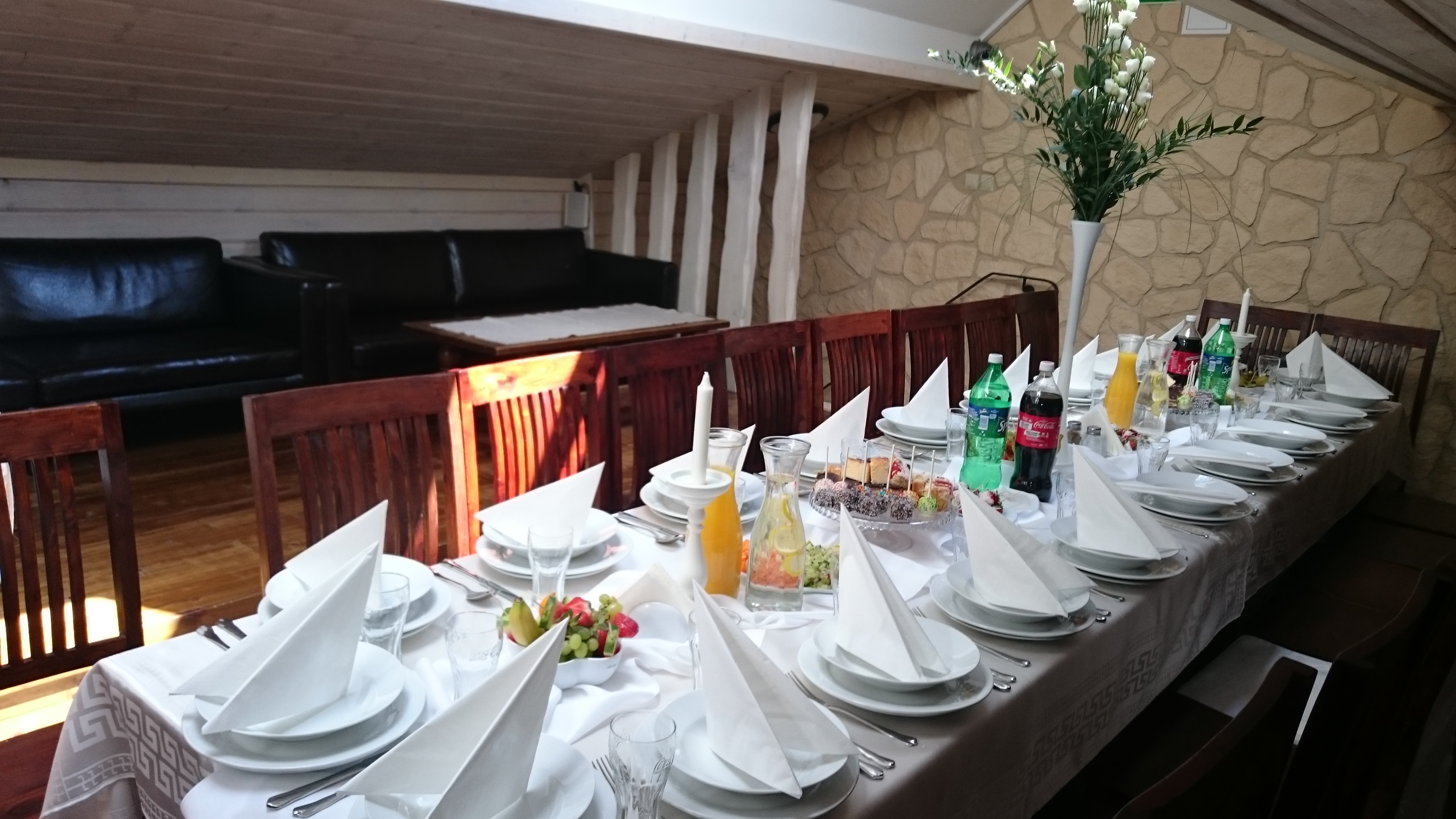 Zadbaliśmy również o komfortowy i przytulny wystrój restauracji, każdy znajdzie tu miejsce dla siebie i spędzi miłe chwile z rodziną, znajomymi bądź na owocnej rozmowie biznesowej. Także przy organizowaniu większych spotkań zadbamy o najdrobniejsze szczegóły, pomożemy w podejmowaniu decyzji, tak, aby przyjęcie było przyjemnością dla wszystkich – gości i gospodarzy.